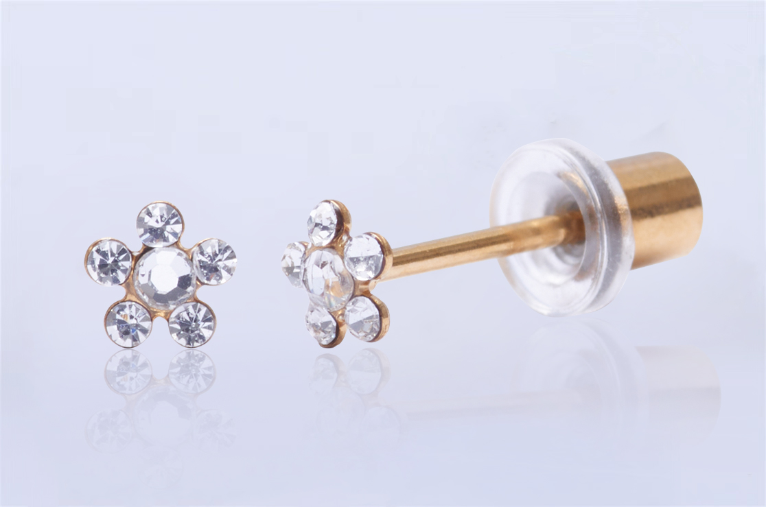 Az „orvosi fém” (316L stainless steel) sajnos tartalmaz nikkelt, bár határérték alatti mennyiségben. Viszont aki allergiás, azt is azonnal megérzi. Így a legbiztonságosabb fém, amivel fül és orrlyukasztást végezhetünk, az a TITÁNIUM. A titánium biokompatibilis, az emberi szervezet jól tolerálja – nem véletlen, hogy orvosi implantátumoknál is titániumot használnak. Nem oxidálódik, nem korrodál, nem lép reakcióba a bőrrel, a nedvességgel vagy a testnedvekkel, így nem okoz elszíneződést vagy irritációt. Ezek miatt gyorsabb, problémamentesebb a gyógyulás, tehát csökken a gyulladás és a szövődmények esélye. Egy kisbabánál ez kiemelten fontos, nem érdemes kockáztatni!